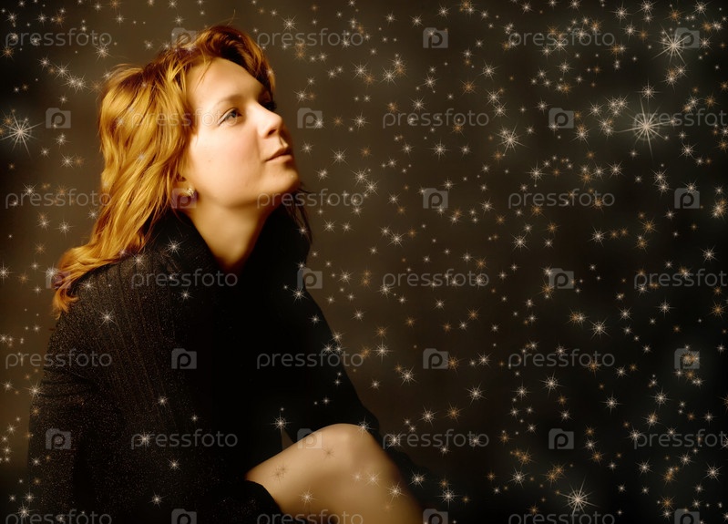 Рыжеволосая молодая женщина на звездном фоне