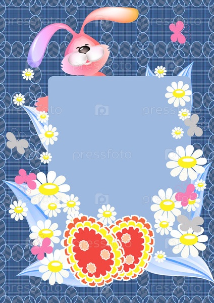 Открытка с розовым зайчиком и ромашками