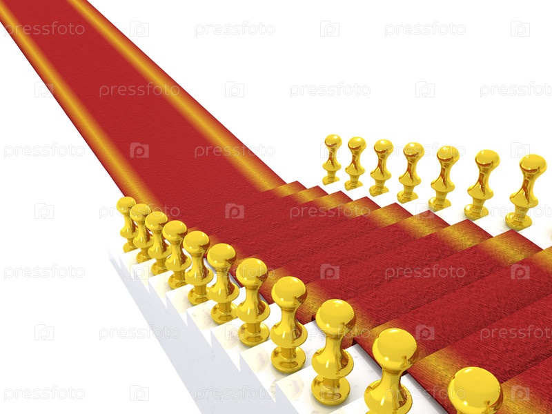 Позолоченная лестница с красной ковровой дорожкой