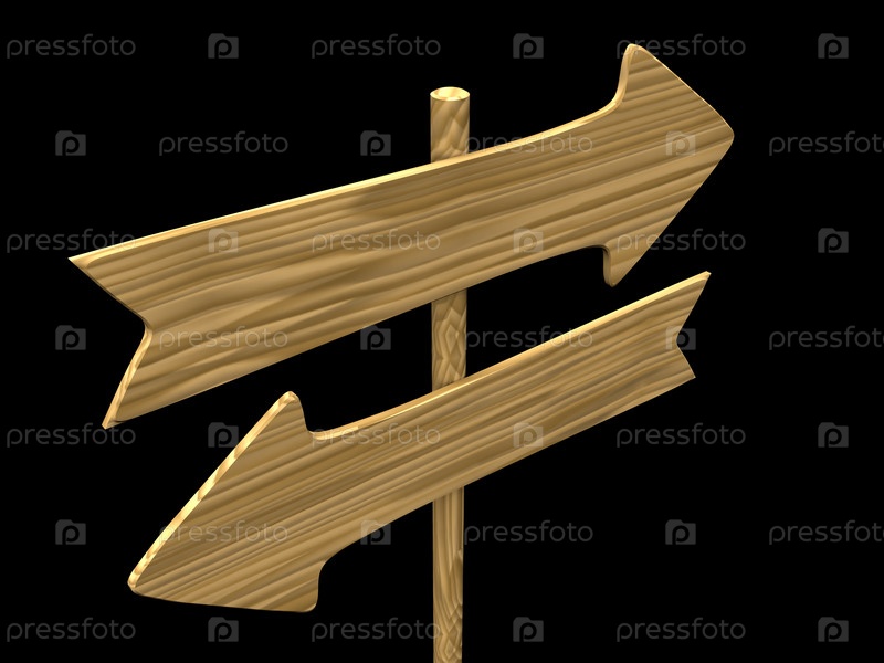 Пустые деревянные стрелки-показатели на черном фоне, 3d