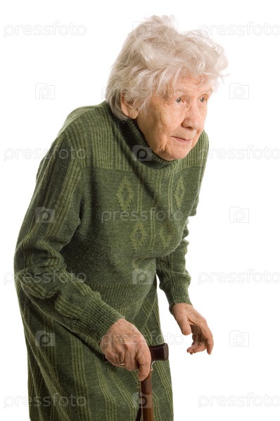 Пожилая женщина на белом фоне