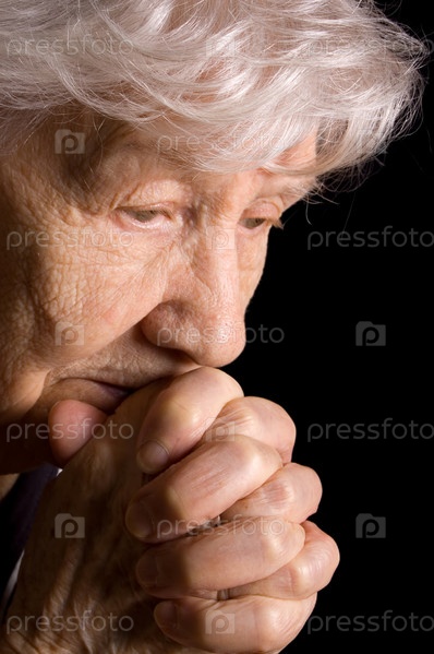 Пожилая женщина на черном фоне