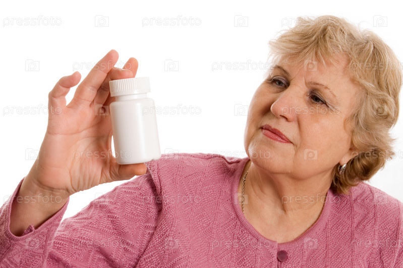 Пожилая женщина с лекарствами в руках