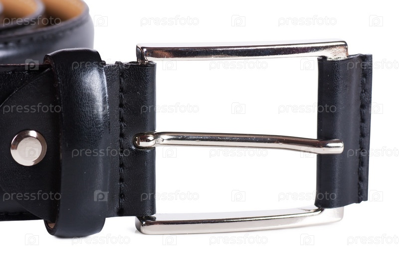 Кожаный ремень с металлической пряжкой на белом фоне