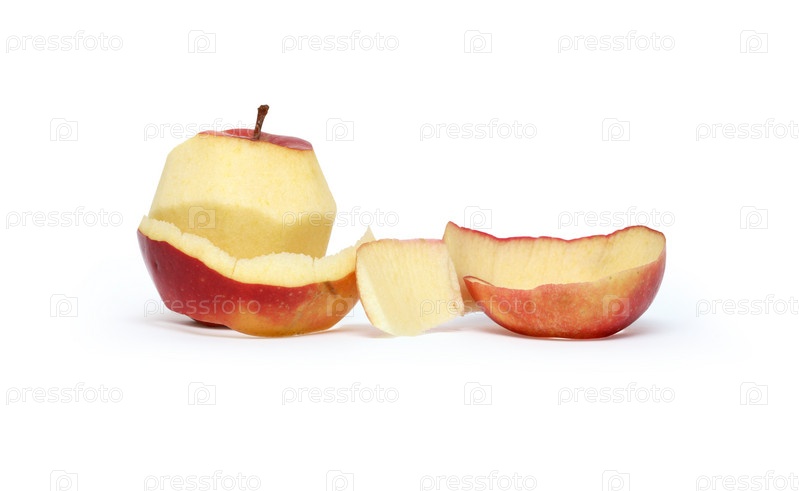 Очищенное яблоко на белом фоне