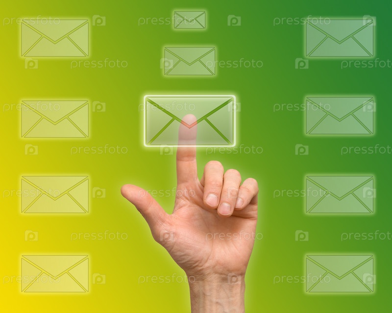 Рука нажимает на сенсорную кнопку в виде конверта