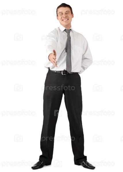Красивый молодой бизнесмен протягивает руку для приветствия