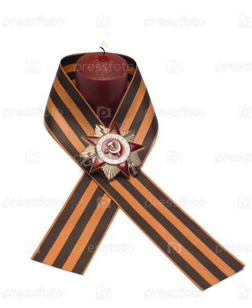 Георгиевская лента с орденом, изолированная на белом фоне