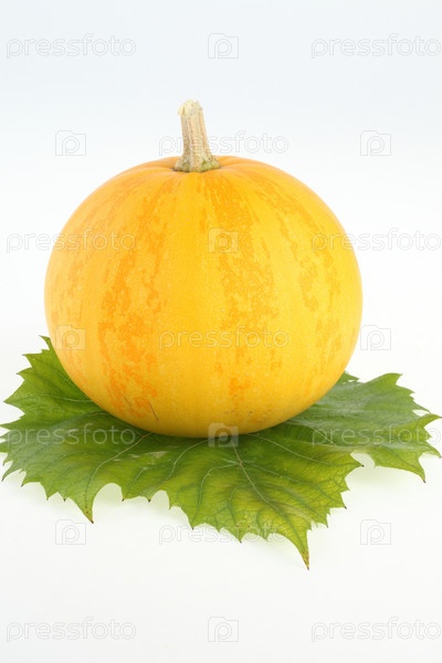 Желтая тыква на зеленом листе