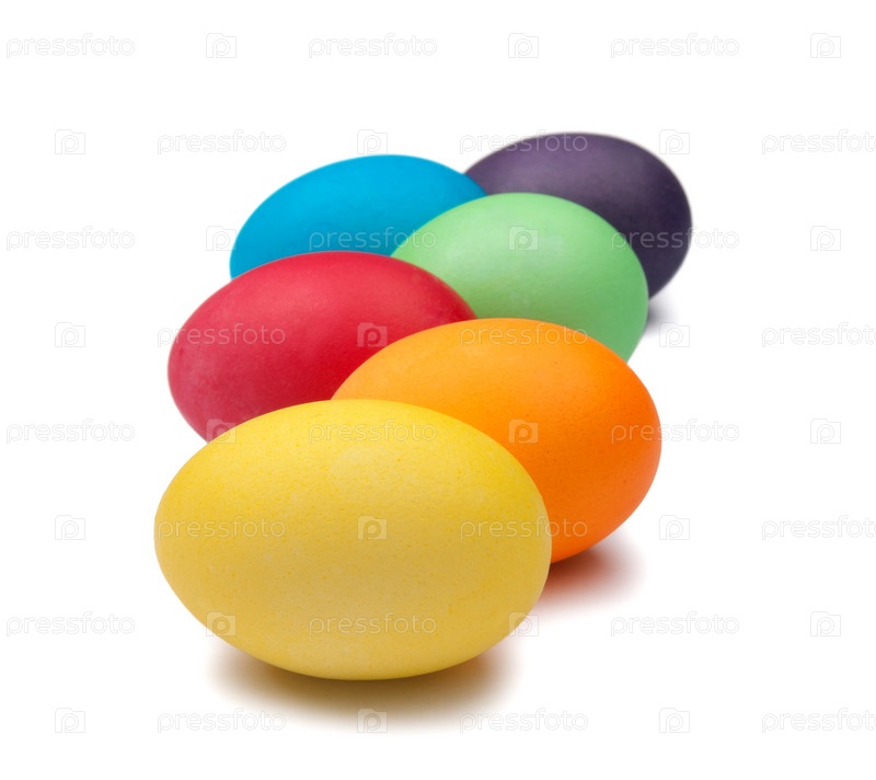 Разноцветные крашеные яйца для Пасхи на белом фоне