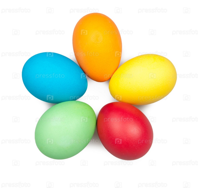 Разноцветные крашеные яйца для Пасхи на белом фоне