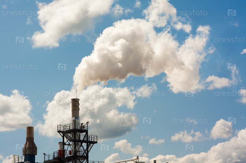 Грязный дым на фоне облачного неба