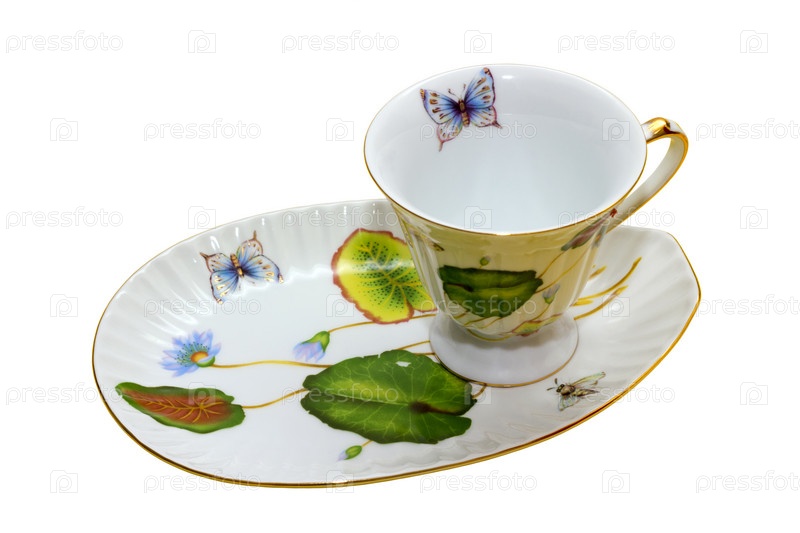 Чашка с блюдцем на белом фоне