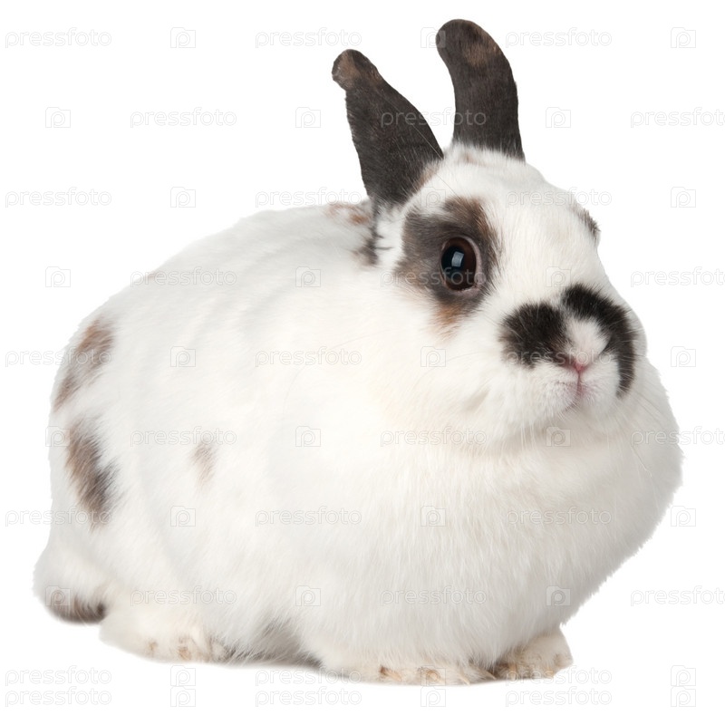 Пятнистый кролик на белом фоне