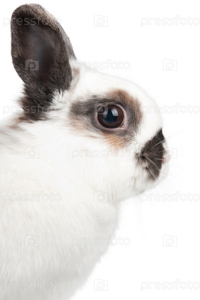 Пятнистый кролик на белом фоне