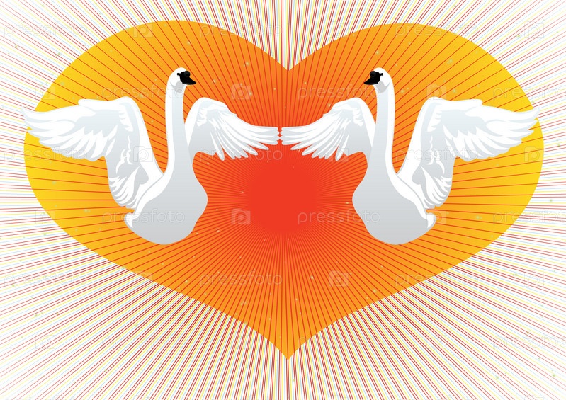 Два белых лебедя на фоне сердца