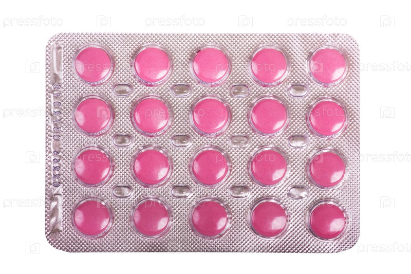 Упаковка розовых таблеток, изолированная на белом фоне