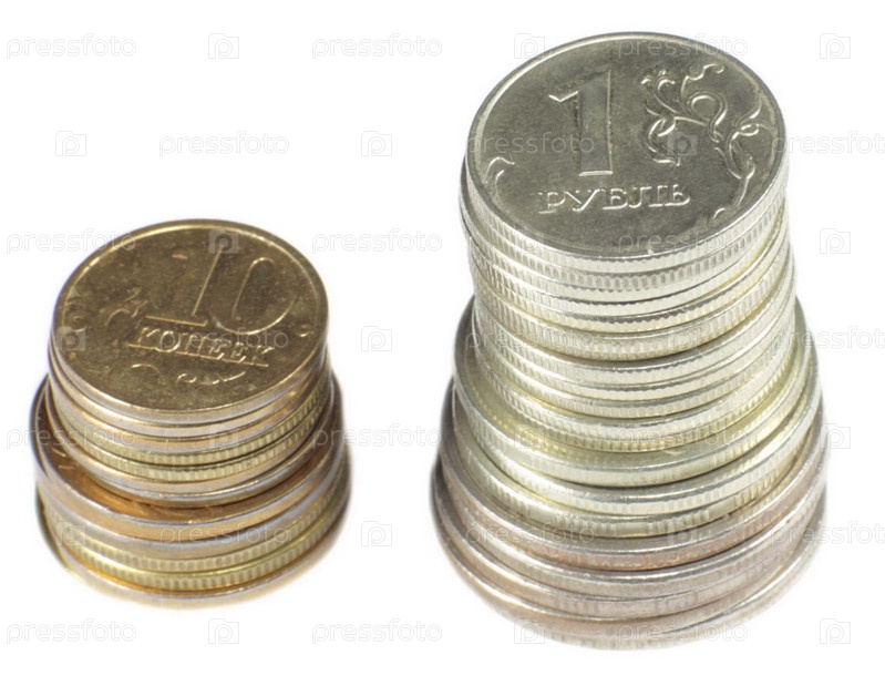 Стопки монет на белом фоне