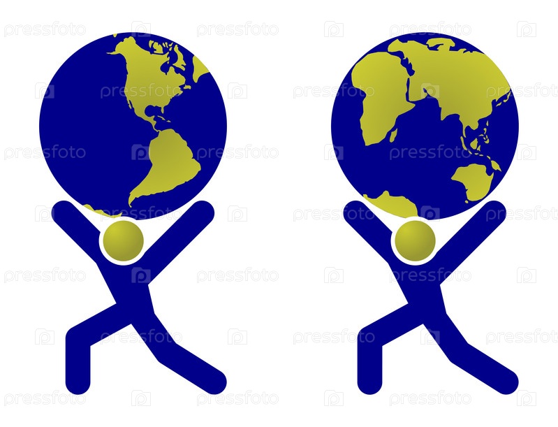 Абстрактные человечки держат глобусы