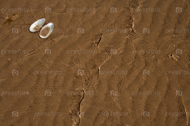 Раковина на песчаном фоне летом