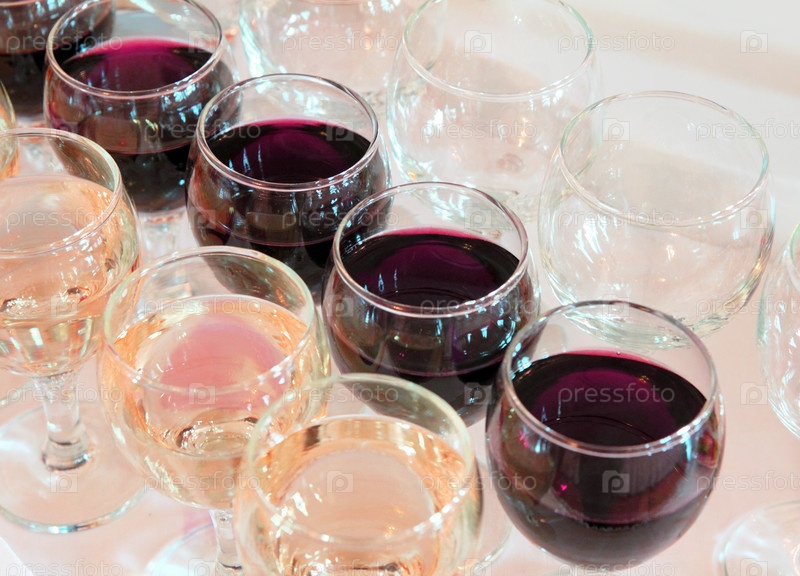 Ряды бокалов с красным и белым вином