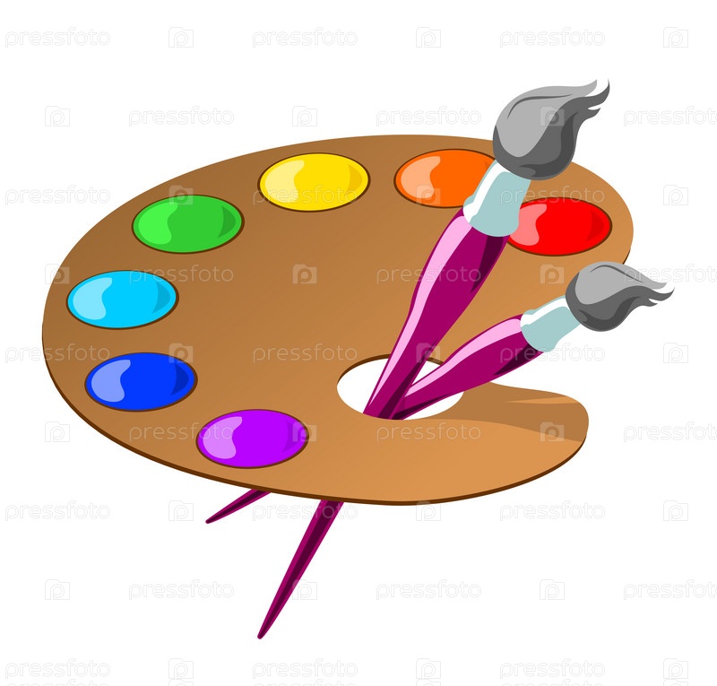 Палитра основных цветов и кисти на белом фоне
