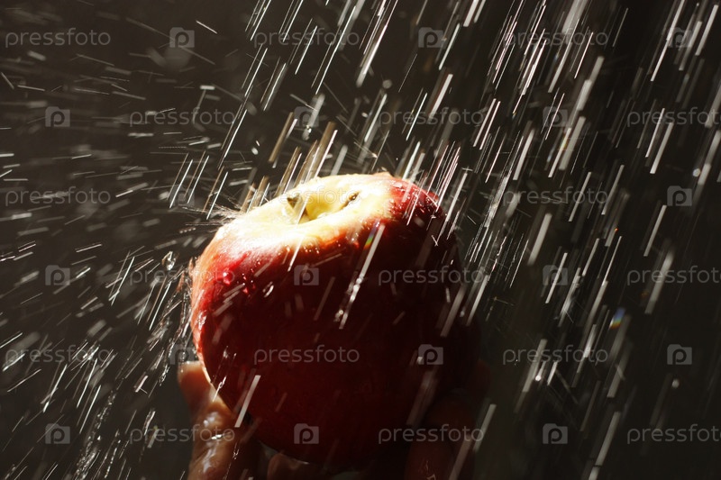 Яблоко под струями воды