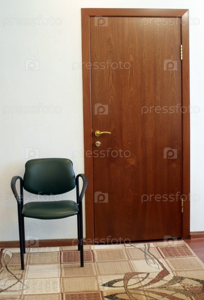 Входная дверь в офис с креслом для ожидания