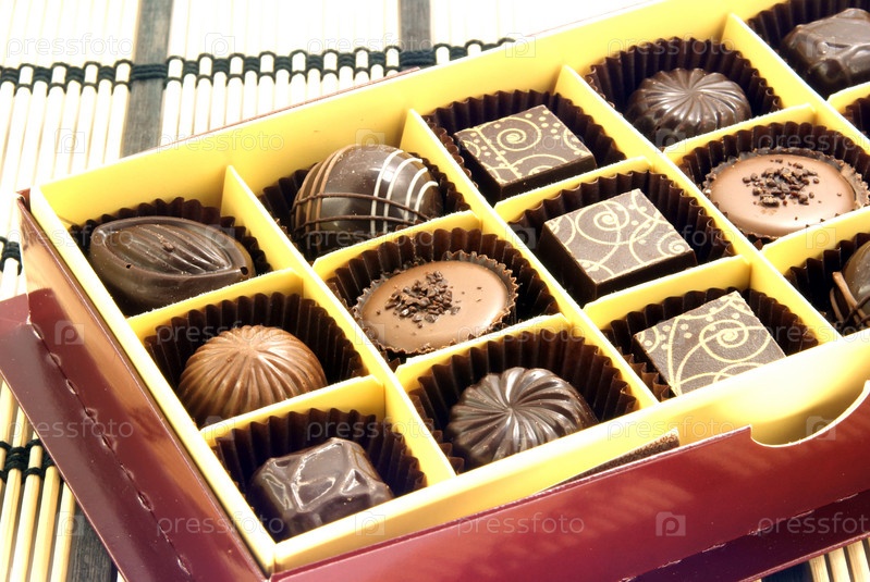 Конфеты в коробке на бамбуковом мате