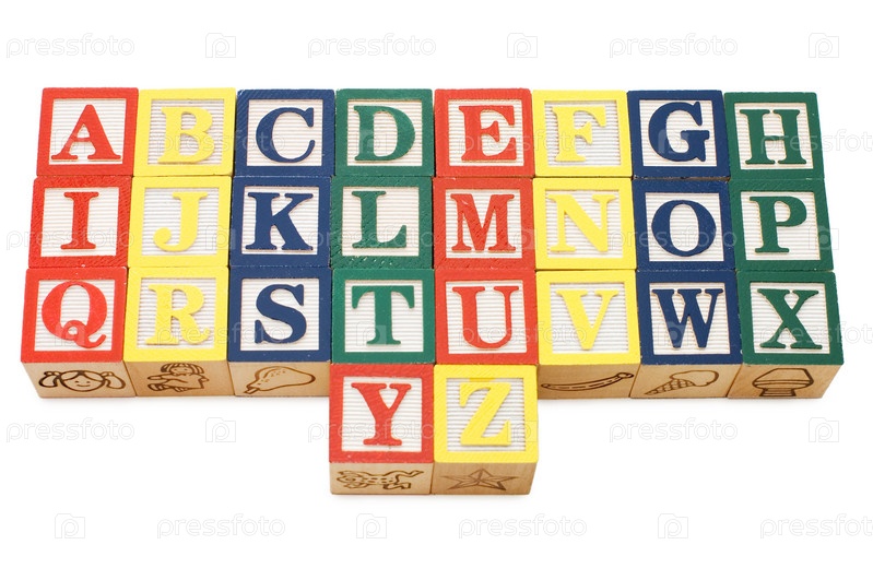 Кубики с английскими буквами на белом фоне