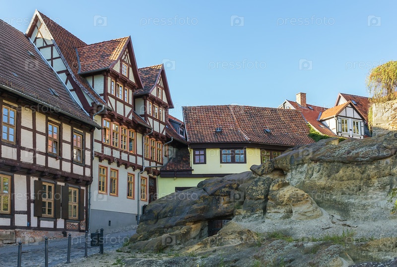 Улица с фахверковыми домами в городе Кведлинбург, Германия