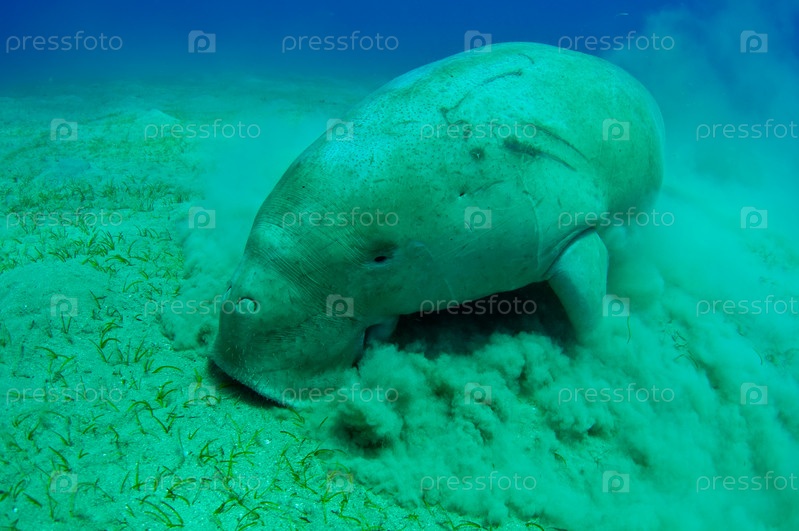 Мирный ламантин плавает под водой. Красное море. Египет