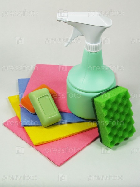 Оранжевое и зеленое мыло со светло-зеленым распылителем на цветных салфетках