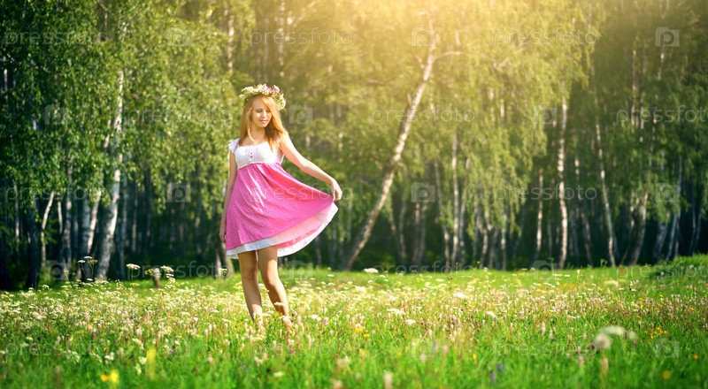 Привлекательная девушка на зеленом лугу