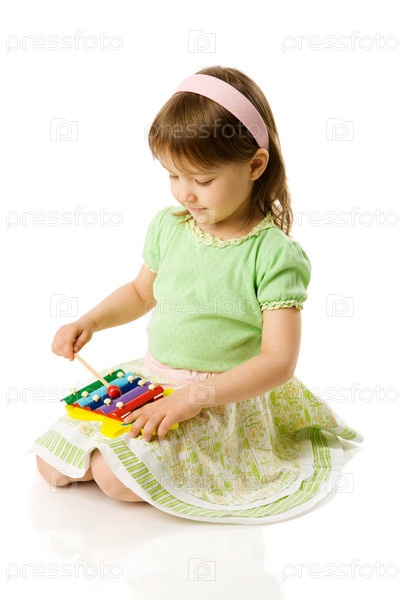 Симпатичная маленькая девочка играет на ксилофоне
