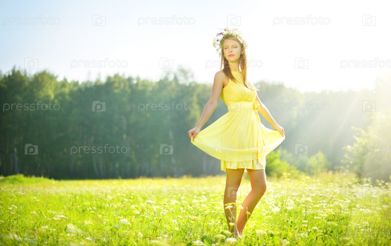 Привлекательная девушка на зеленом лугу
