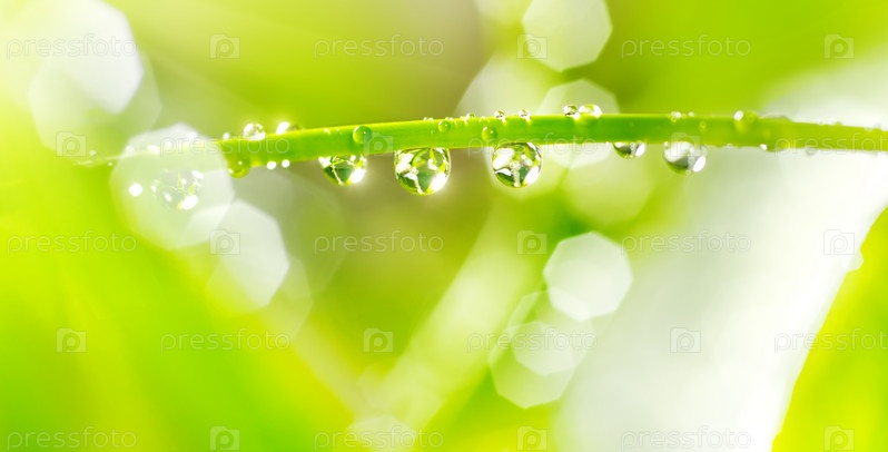 Капли воды на зеленом стебле