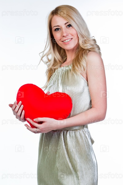 Молодая и красивая женщина с плюшевым сердцем