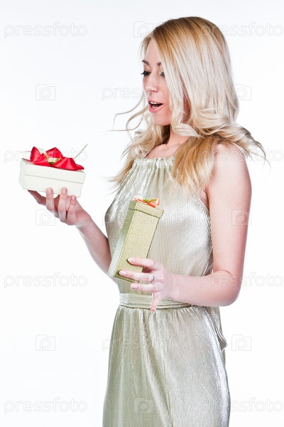 Молодая и красивая женщина с подарком