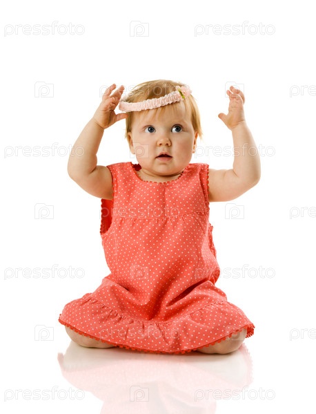 Очаровательная годовалая девочка на белом фоне