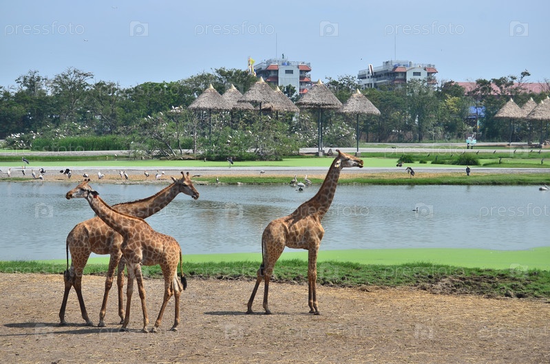 Жирафы на фоне жилых домов. Бангкок
