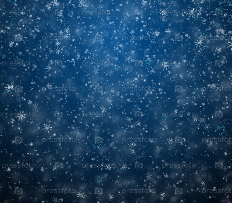 Морозный зимний фон, падающие снежинки и звезды