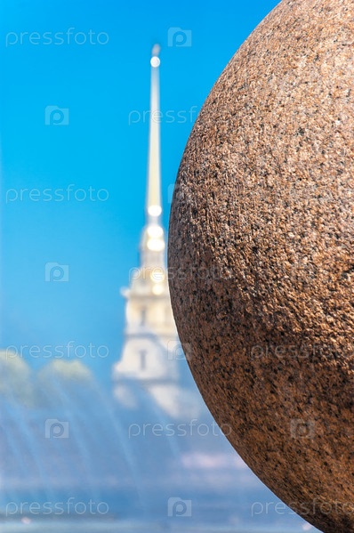 Каменный шар на фоне шпиля