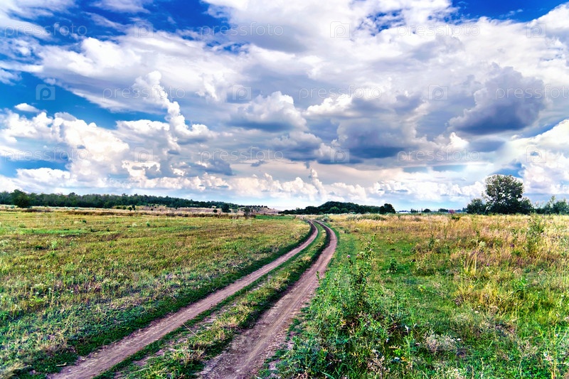 Сельская дорога в середине поля