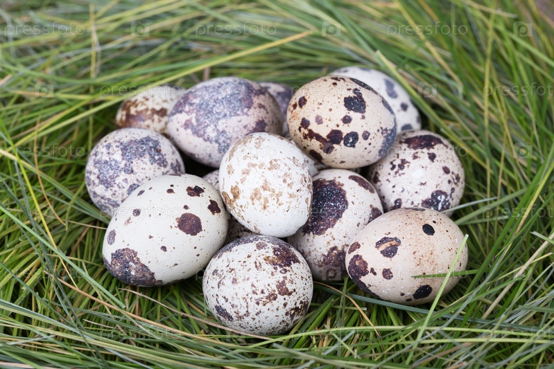 Пятнистые перепелиные яйца в траве
