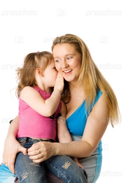 Маленькая девочка что-то шепчет своей маме