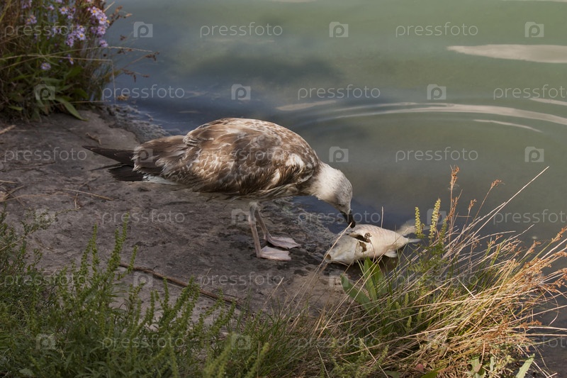 Чайка ест рыбу