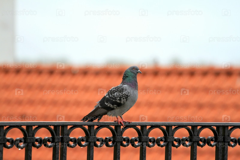 Голубь на фоне крыши дома в Варшаве, Польша