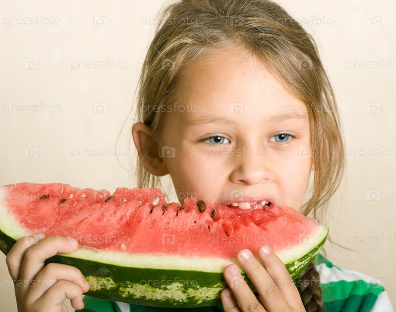 Девочка ест арбуз