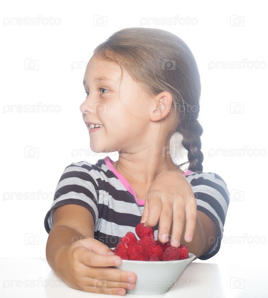Девочка держит малину